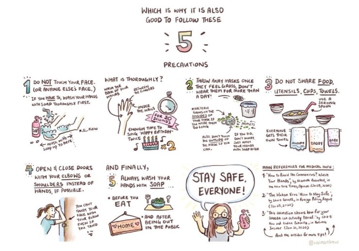 The World Health Organization diagrams below show how to wash your hands very thoroughly.